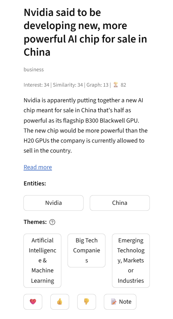 Built my current daily news dashboard by leveraging graph-based recommendation, and NER, zero-shot classification for entity and theme extraction. Also features deep-dive exploration for thorough topic research.